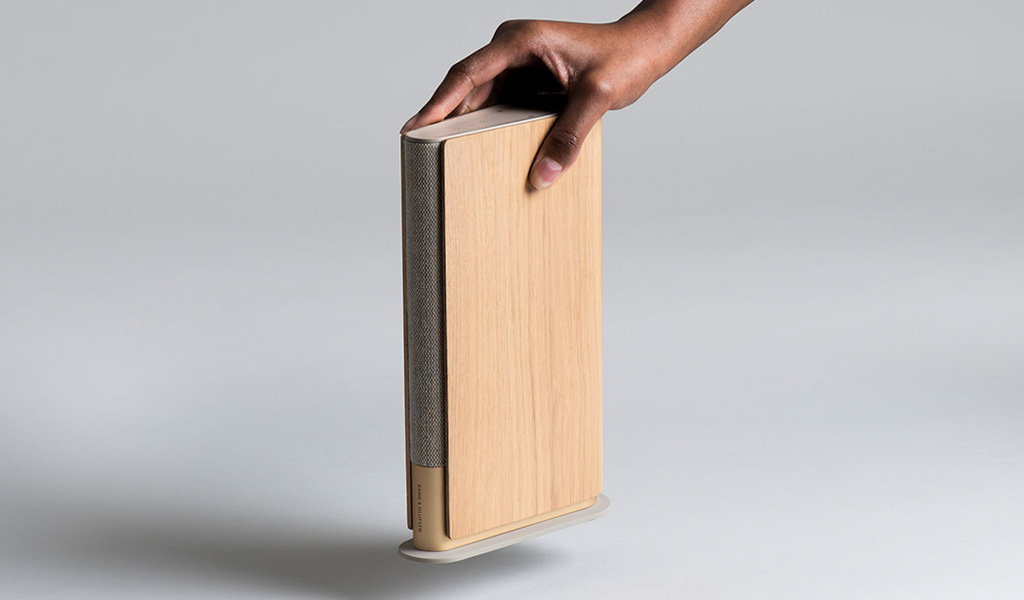 这款音箱由著名的音箱公司B&O设计研发,其设计灵感来源于我们平时所用到的书本,整体外观设计就像一本立着的书;边缘略微张开,书脊则放